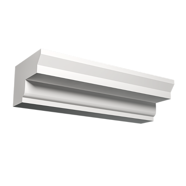 Основной материал карниза — алюминий, который известен своей прочностью и легкостью. Покрытие может быть выполнено из различных материалов, включая матовую и глянцевую краску, а также декоративные напыления.