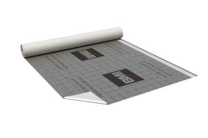Трехслойная паропроницаемая мембрана из нетканого полипропилена, с функциональным водонепроницаемым слоем и продольной самоклеящейся полосой на одной стороне полотна. Полоса защищена антиадгезионной полиэтиленовой пленкой, которая удаляется в процессе монтажа.