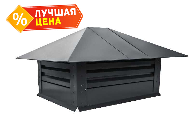 Дымник на трубу с жалюзи 520х390мм 0,5 Quarzit lite с пленкой RAL 7024 мокрый асфальт