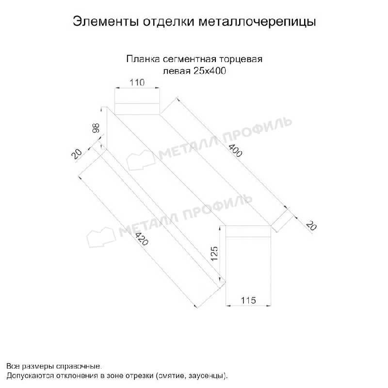 - Планка сегментная торцевая левая 400 мм (PURMAN-20-3005-0.5) не ржавеет.