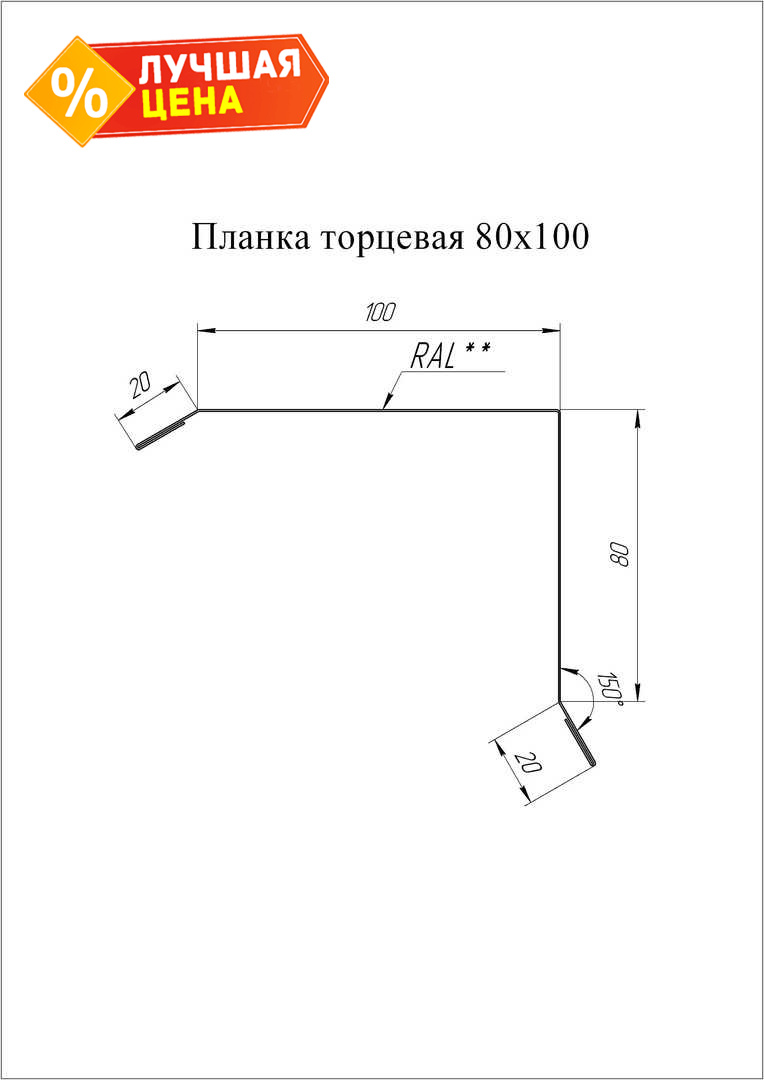 Планка торцевая Grand Line 80х100 0,45 Полиэстер RAL 5018