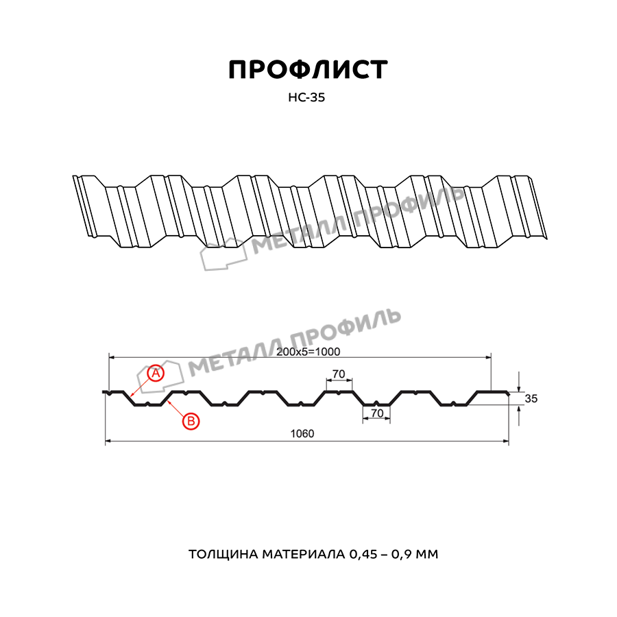 Профиль НС-35 имеет толщину 0,5 мм, что делает его прочным и надежным материалом. Он изготовлен из металла, что обеспечивает ему долговечность и устойчивость к внешним воздействиям.