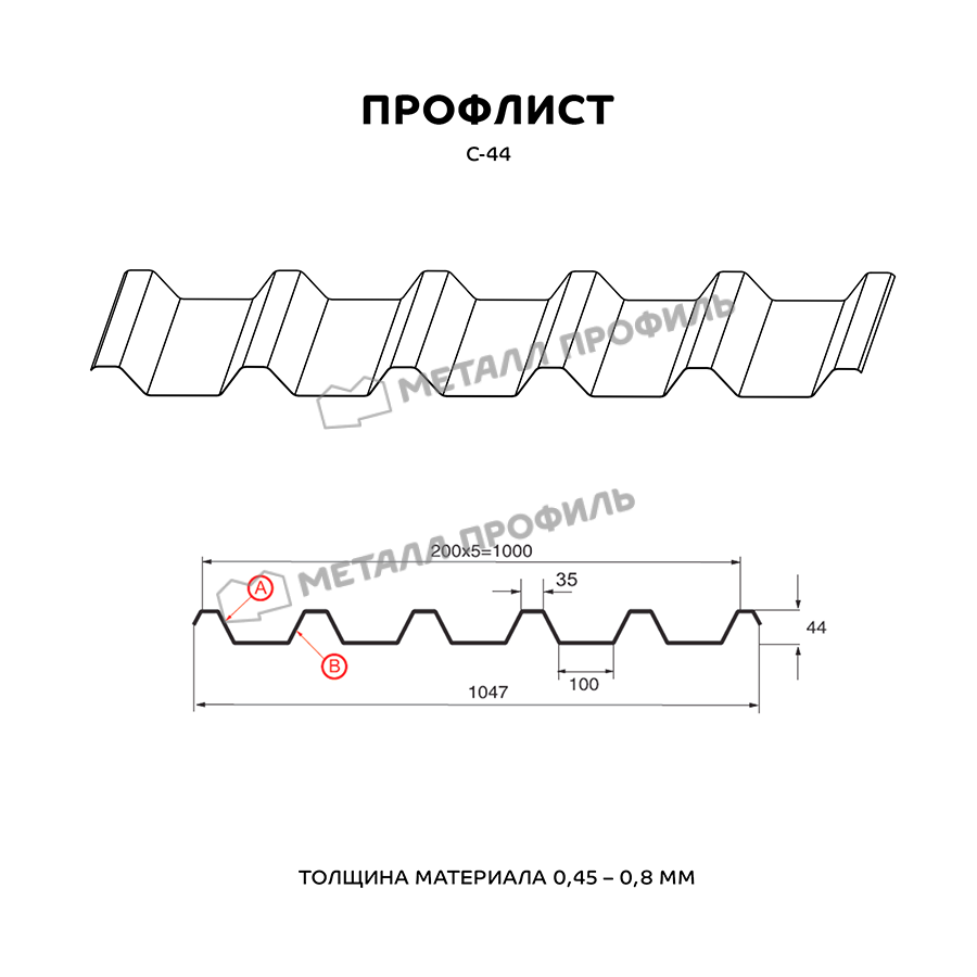 Профиль С-44 обладает высокой устойчивостью к воздействию атмосферных условий, ультрафиолетового излучения и коррозии. Он также обладает хорошей звукоизоляцией и теплоизоляцией, что делает его идеальным выбором для кровли и стен.