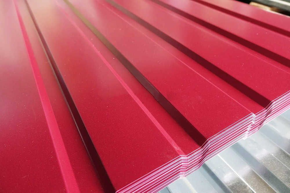 Профнастил С8А фигурный 0,4 PE в пленке RAL 3005 красное вино