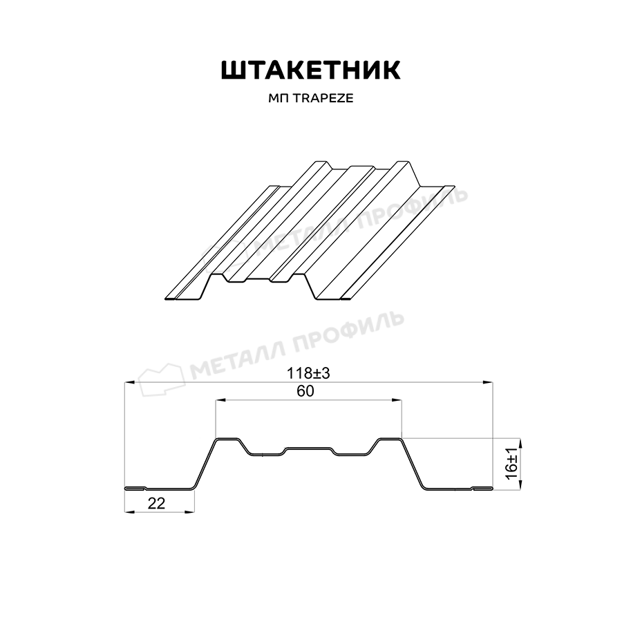 Штакетник Металл Профиль TRAPEZE-T 0,4 Полиэстер RAL5005 Синий насыщенный