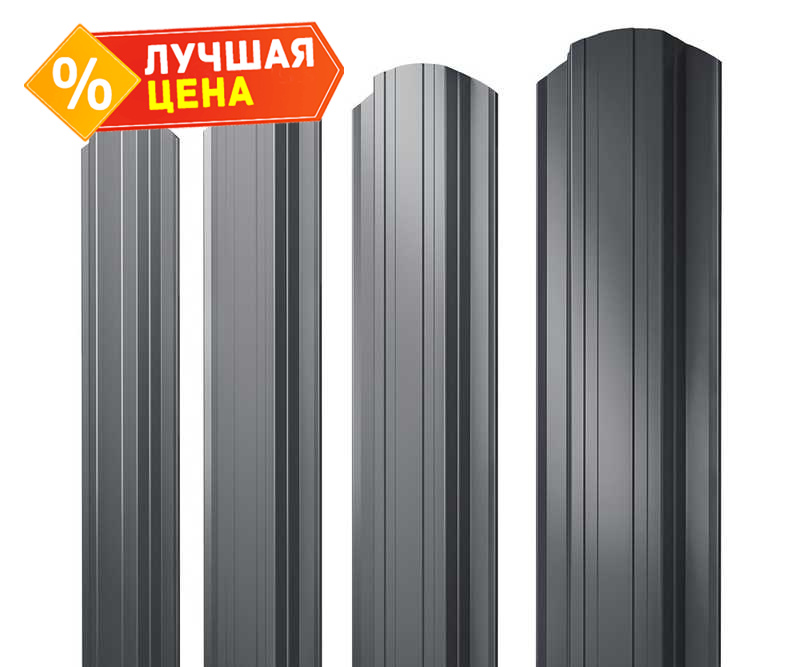 Штакетник Прямоугольный фигурный Grand Line 0,5 Quarzit PRO Matt RAL7024 Мокрый Асфальт