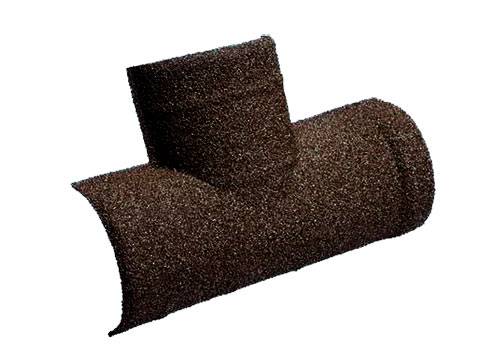 Т-образный полукруглый коньковый элемент Метротайл (Metrotile), цвет айрон-барк, 450х175 мм - незаменимые элементы для создания прочной и долговечной крыши. В нашем ассортименте представлены только качественные комплектующие, такие как крепежные элементы, герметики, вентиляционные системы и др. Они обеспечивают надежное крепление и герметичность покрытия, защиту от влаги и ветра и создают комфортный микроклимат под крышей. Покупая наши комплектующие, вы получаете гарантию качества и долговечность.