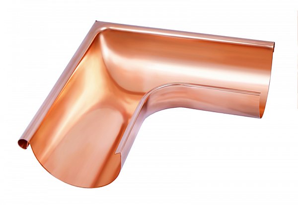 Угол желоба внешний 90 градусов, диаметром 125 мм, из меди, широко используется в водосточных системах для изменения направления потока воды. Он идеально подходит для домов с сложной архитектурой, где требуется гибкость в установке водосточных элементов. Также этот угол может быть использован в коммерческих зданиях, где важна надежность и долговечность водосточной системы.